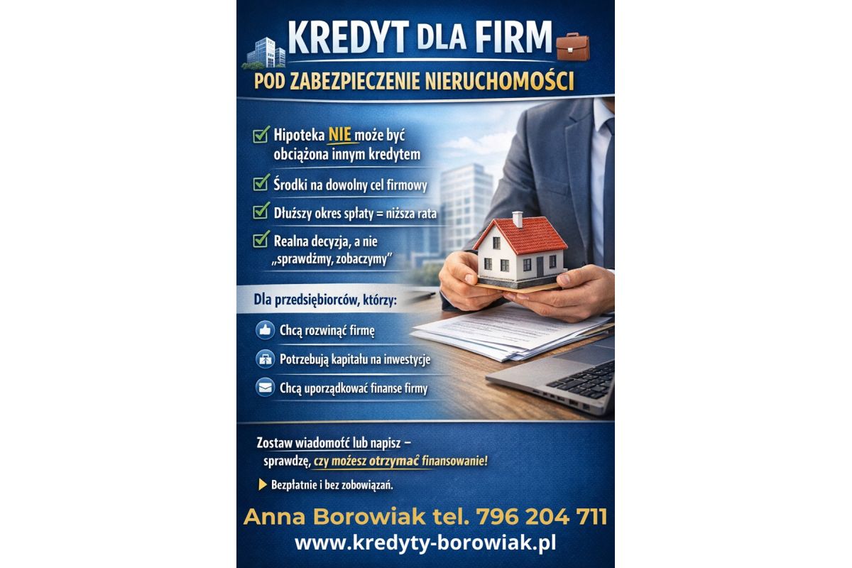 Twoja nieruchomość może zacząć pracować na rozwój Twojej firmy. Zamiast czekać na lepszy moment, możesz szybko zdobyć środki na to, co naprawdę zwiększy Twoje zyski.